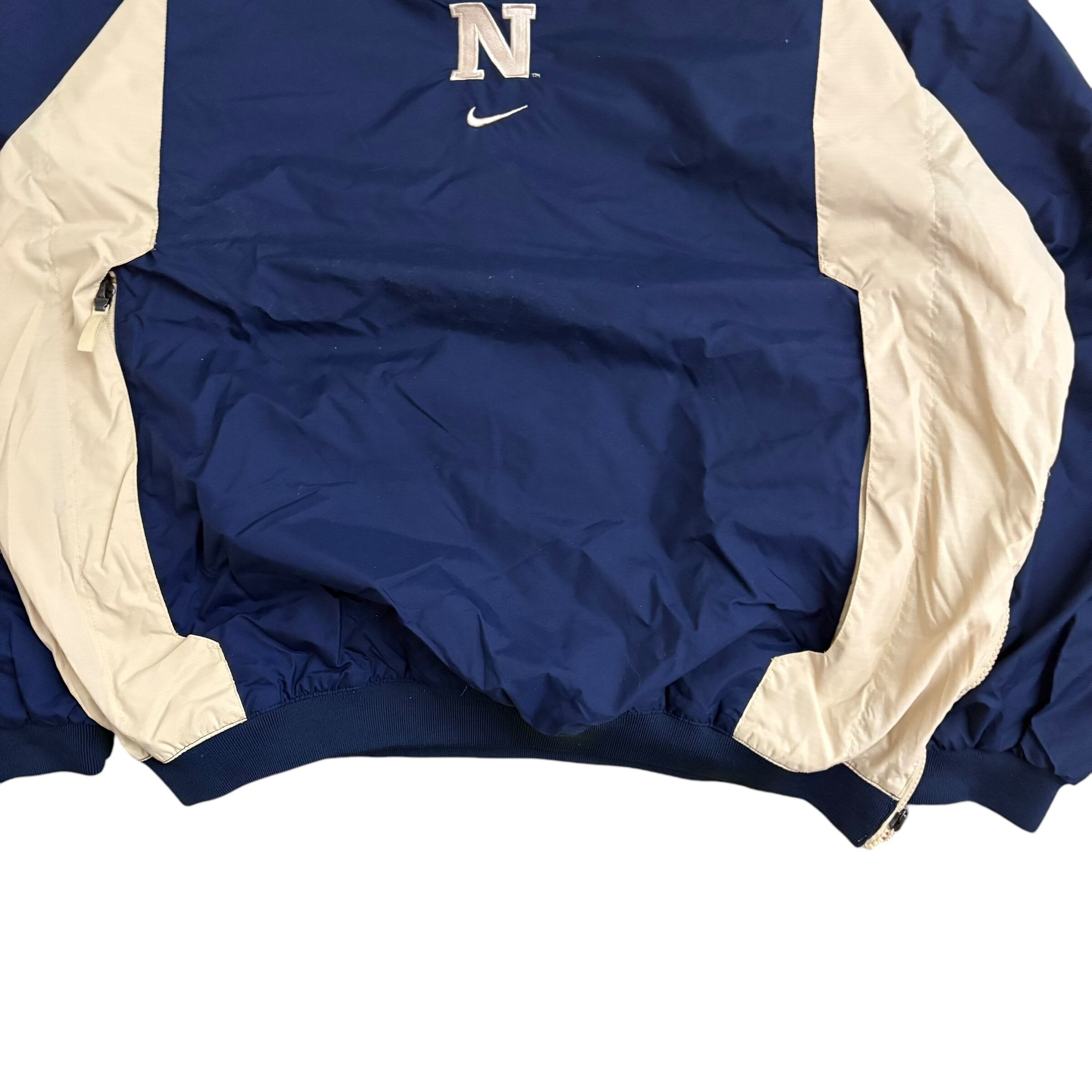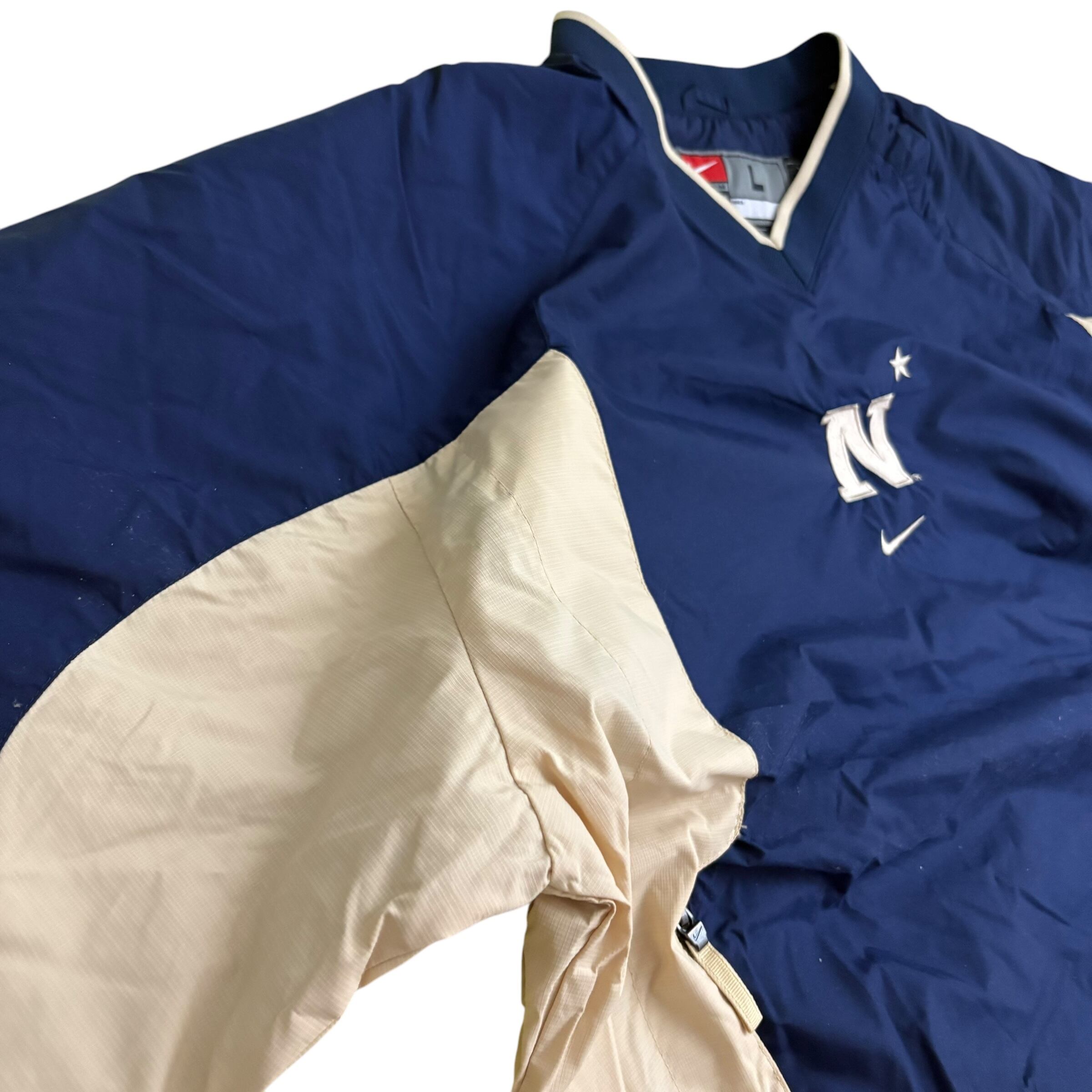 B786nikeナイキナイロンジャケットプルオーバーy2k刺繍ロゴたチームロゴNAVYメンズライクマルイ系渋カジアメカジオールド感レトロ感フェード感キャンプアウトドアフィッシング登山釣りゴルフノームコアゆるだぼ スケーター 希少 超激レア 入手困難古着男子 古着女子 ビックシルエット オーバーサイズ y2k