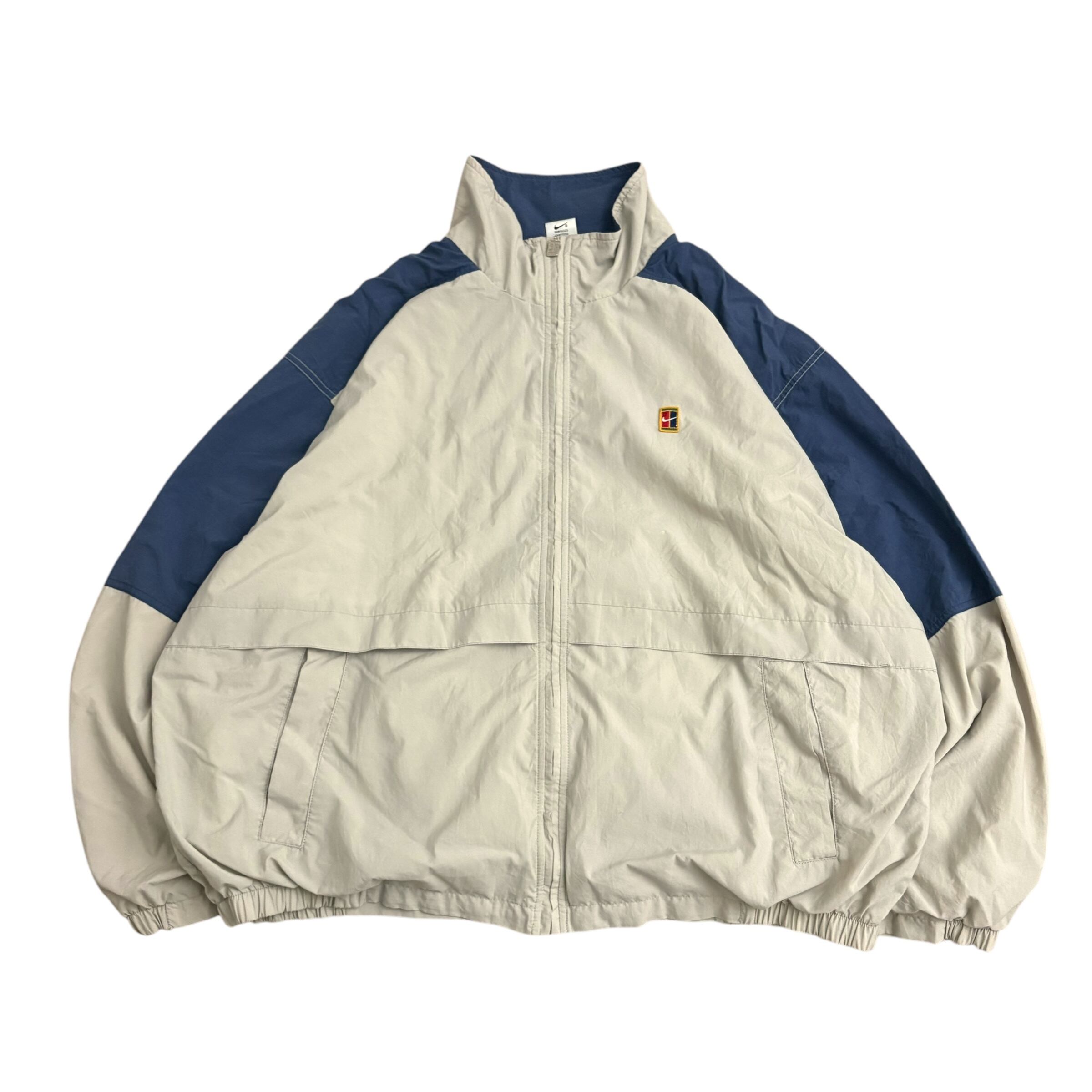 ナイキのナイロンジャケットジャケットの中でかなりの人気を誇るアイテム!ネイビーにベージュの切り返し、短丈、ボックスシルエットに超激レアサイズと刺繍ロゴもシンプルながらにカッコいい!希少価値の高いアイテムとなります。