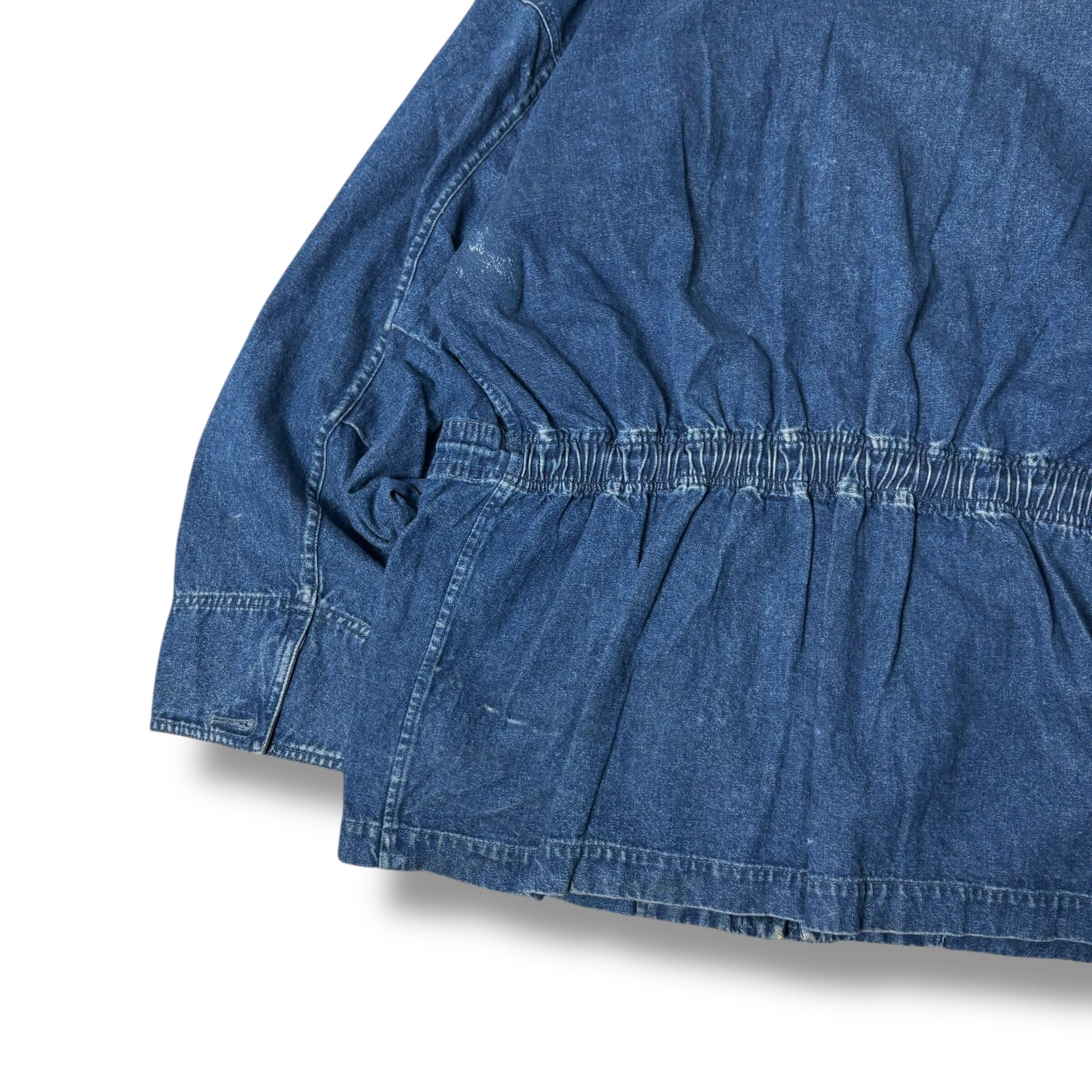 かなり貴重な超激レアなHarley-Davidsonのデニムカバーオール!腰あたりに絞りもできるドローコードがありなかまら、フロントはチャックとボタンで閉じる事ができ、デニムの雰囲気やリペアのデザインすらもカッコよくてたまらない一着