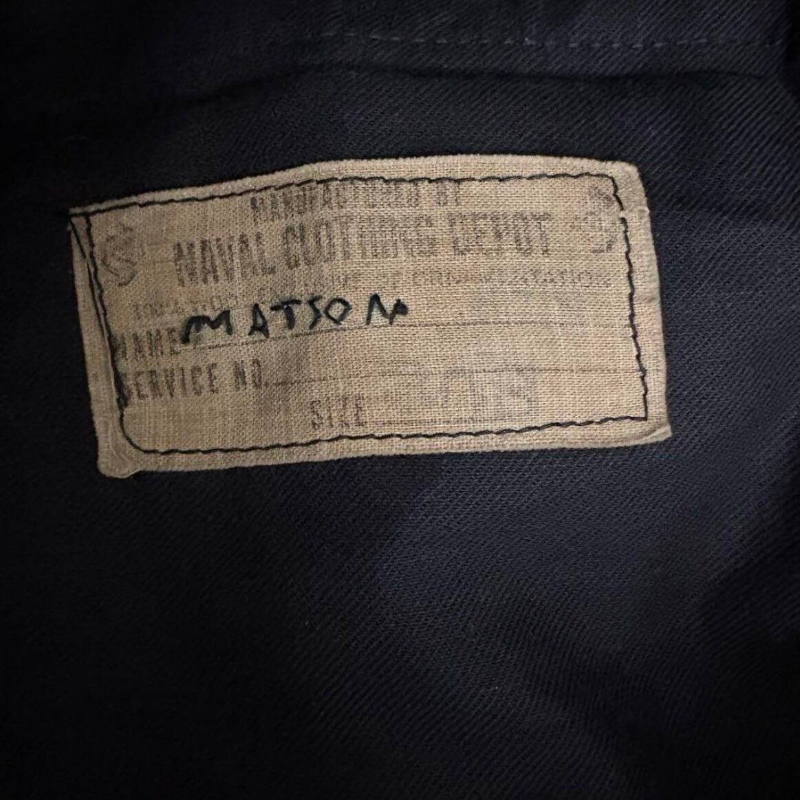 1940年代前後〜50年代中頃まで使用されてたものでネイビーカラーと、厚手のウールギャバジンまたはメルトン系のような素材感で、このサイズ感は本当にでてこない貴重な一枚